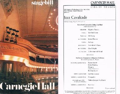 In May 1989 at 7:30 PM, a Jazz Cavalcade was held at the prestigious Carnegie Hall. The Washtenaw Community College Jazz Orchestra under the Direction of Dr. Morris J. Lawrence was among the performing groups. Dr. Lawrence, a prolific composer and arranger and the performance consists of primarily of his compositions. However; John E Lawrence (no relation) was featured on his original composition titled “Feel The Groove.” Above is a copy of the actual program and the program listing from that performance.