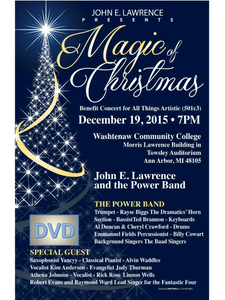 This is a DVD featuring John E. Lawrence and the Power Band live in concert. It was recorded live at the Shriners Silver Garden Events Center in Southfield Michigan on October 3, 2014. Songs include: Culture Shock, Never Go Back, Man in the Mirror and a tribute to Stevie wonder and more. Credits include: John E. Lawrence (Guitar) The Power Band: Al Mackenzie (Keyboards and Musical Director) Emmanuel Fields (Drums) Carl Holmes (Bass Guitar) Al Duncan (Keyboards) Rayse Biggs (Trumpet) Eddie Taylor (Trumpet) Don Whyte (Saxophone) Steven Hunter (Trombone) Brenda Addie, Dawn Roberson and Athena Johnson (Background vocals) special guest vocalists Lenon Wells, Mr. Lee Neal (MC) Coco (special guest comedian).